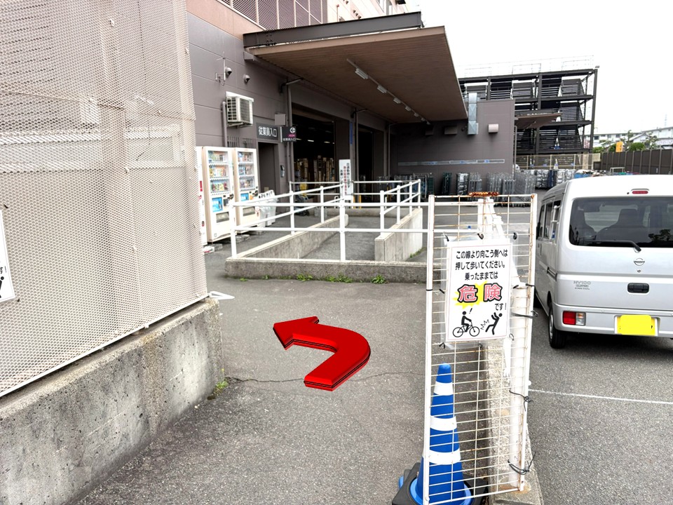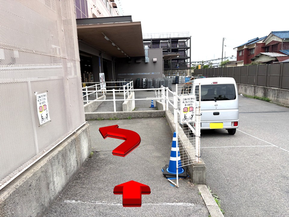 - 従業員用駐輪場: 表記はないが、従業員出入口の入口付近にあり