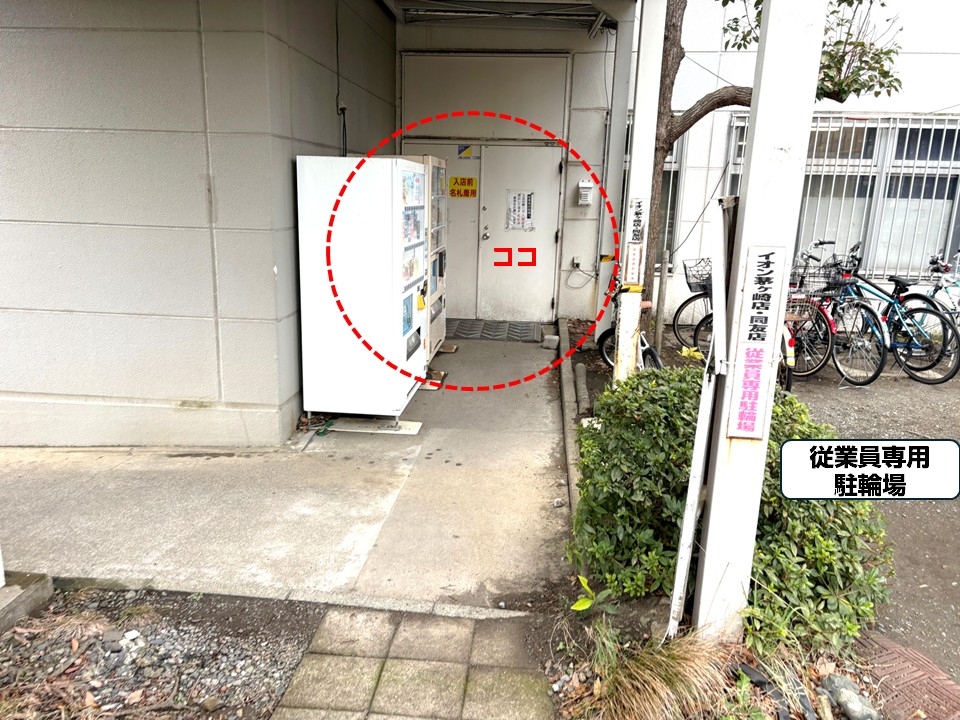 - 従業員用駐輪場: 表記有り、従業員側出入口の入口付近にあり