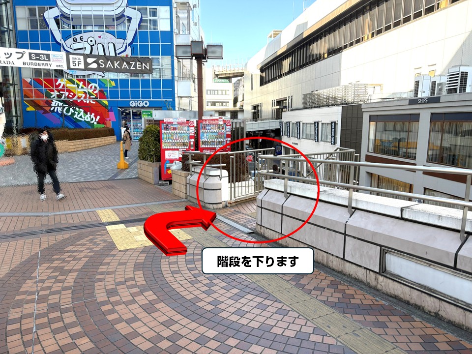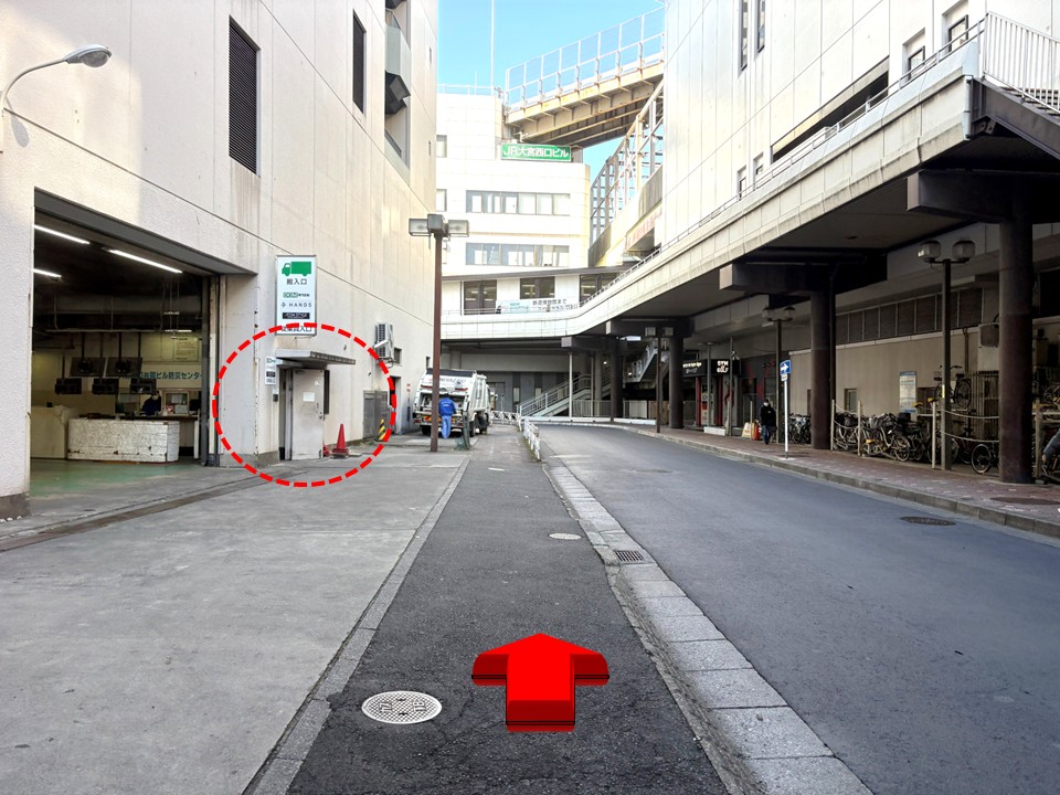 最寄り駅から従業員口までのルートを案内します。
