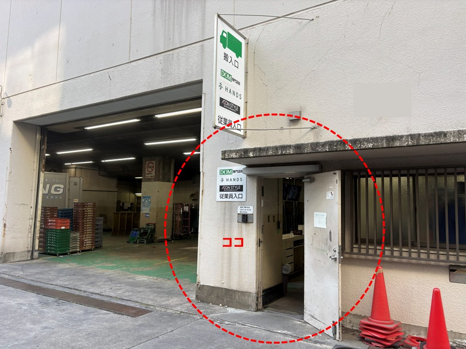 イオンもテナントの一部なので、基本的にイオン専用の出入口はないです。複合施設の従業員が利用する出入口を案内しています。