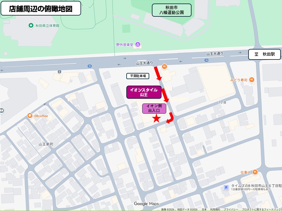 - 最寄り駅: JR東日本 秋田駅 徒歩42分程度