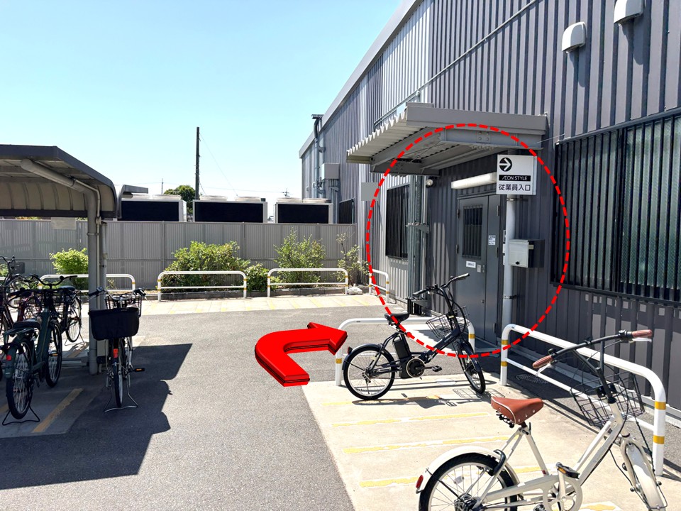 • 従業員用駐輪場: 表記はないが、従業員出入口付近にあり