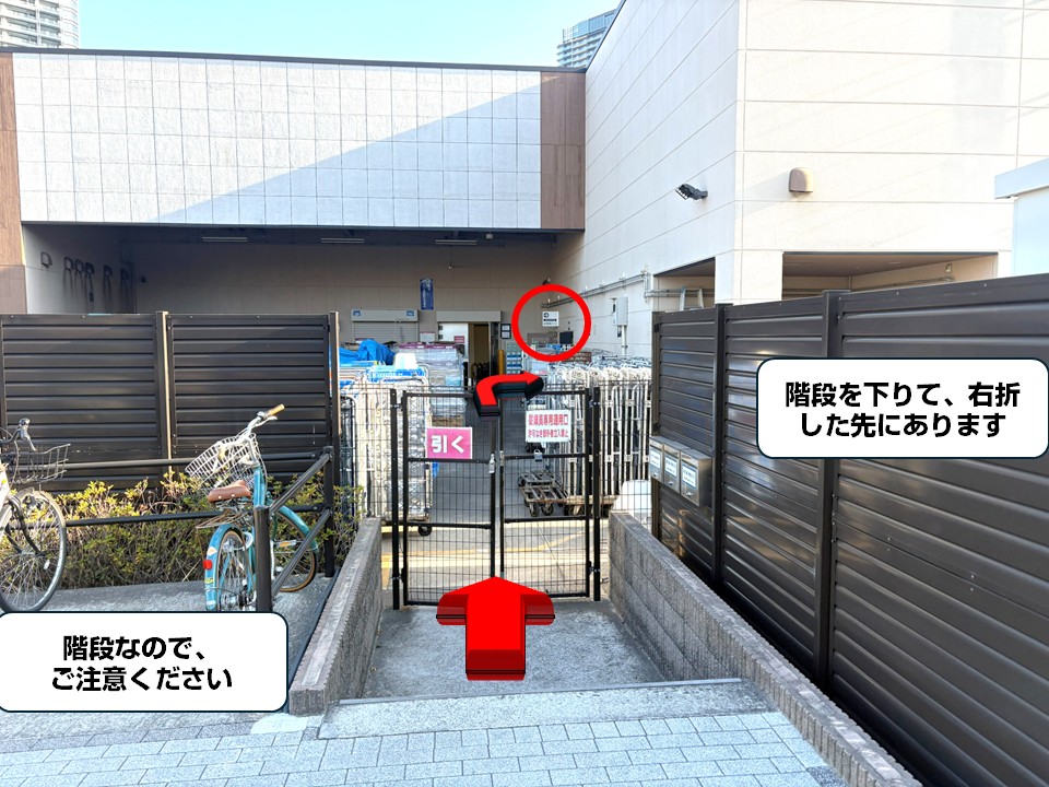- 従業員用駐輪場: 表記はないが、従業員出入口側の入口付近にあり