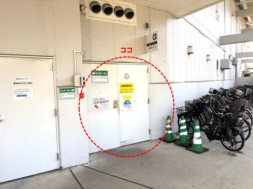 - 店舗の1階北側出入口(自転車売場辺り)が従業員出入口への最短ルートになる場合もあります。