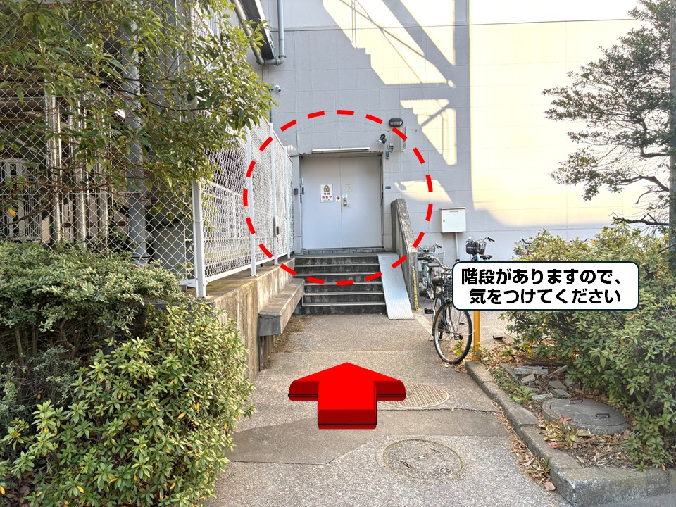 最寄り駅から従業員口までのルートを案内します。
