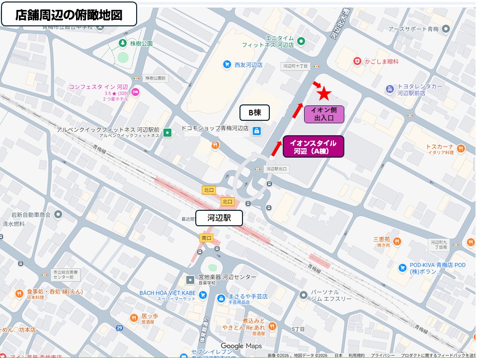 - 2019年8月に、「河辺 とうきゅう」から、イオンスタイル河辺として再オープンした店舗。