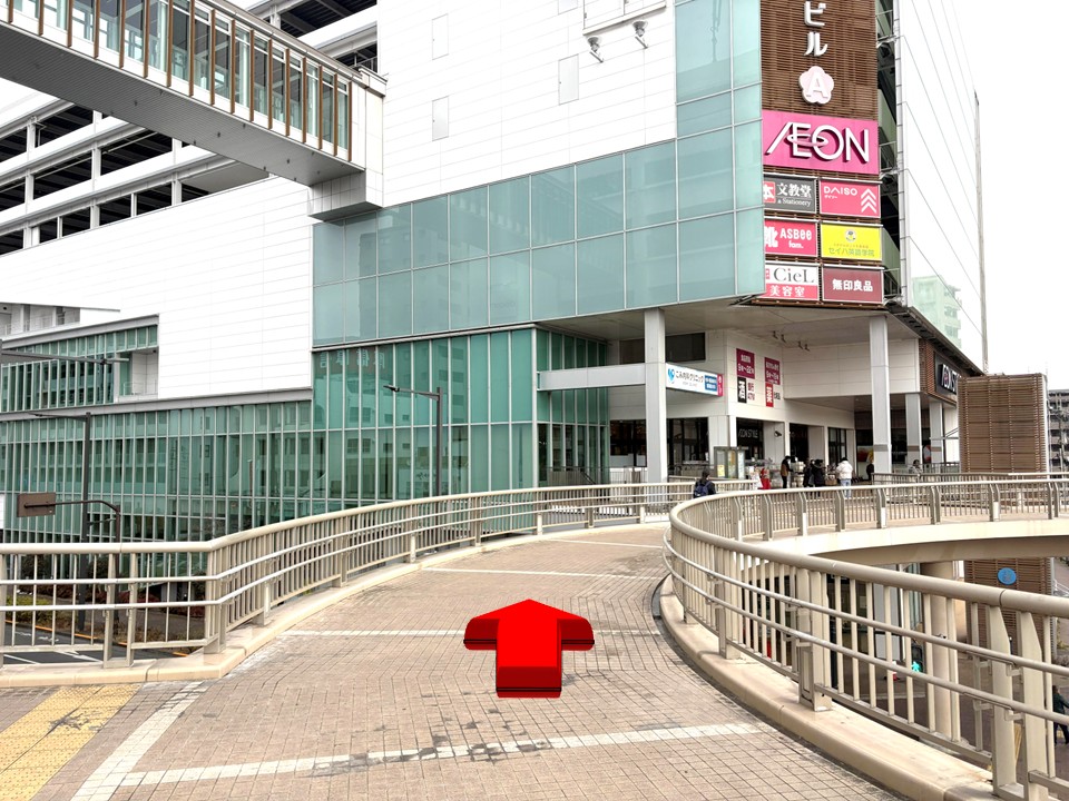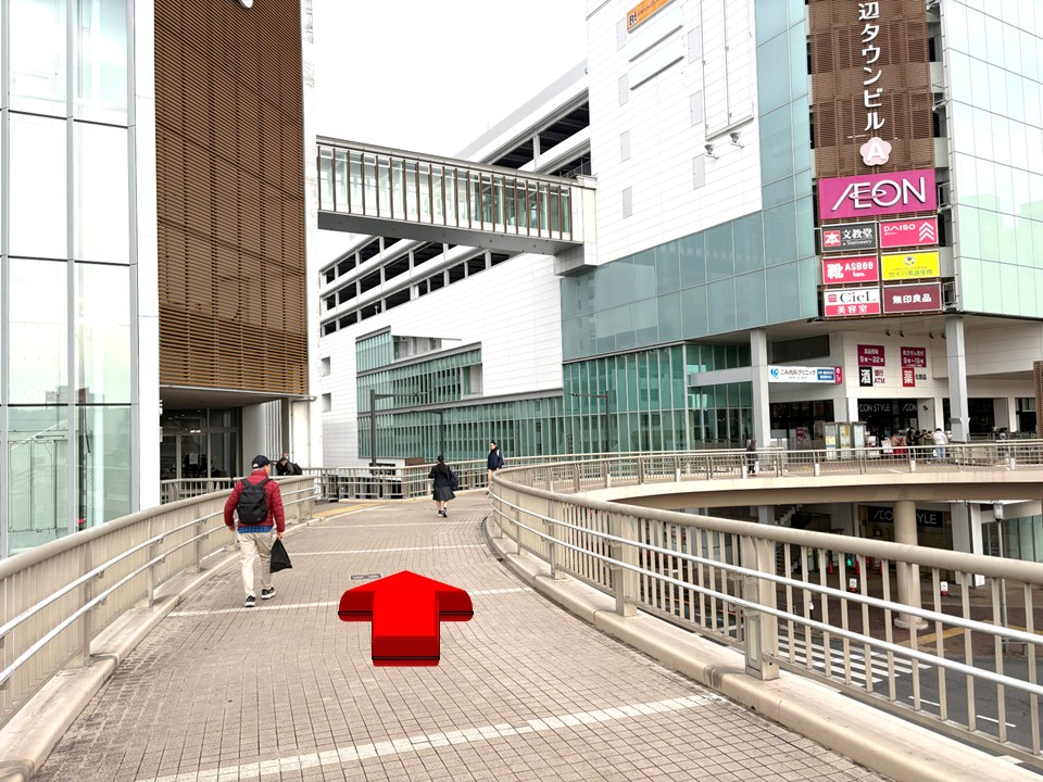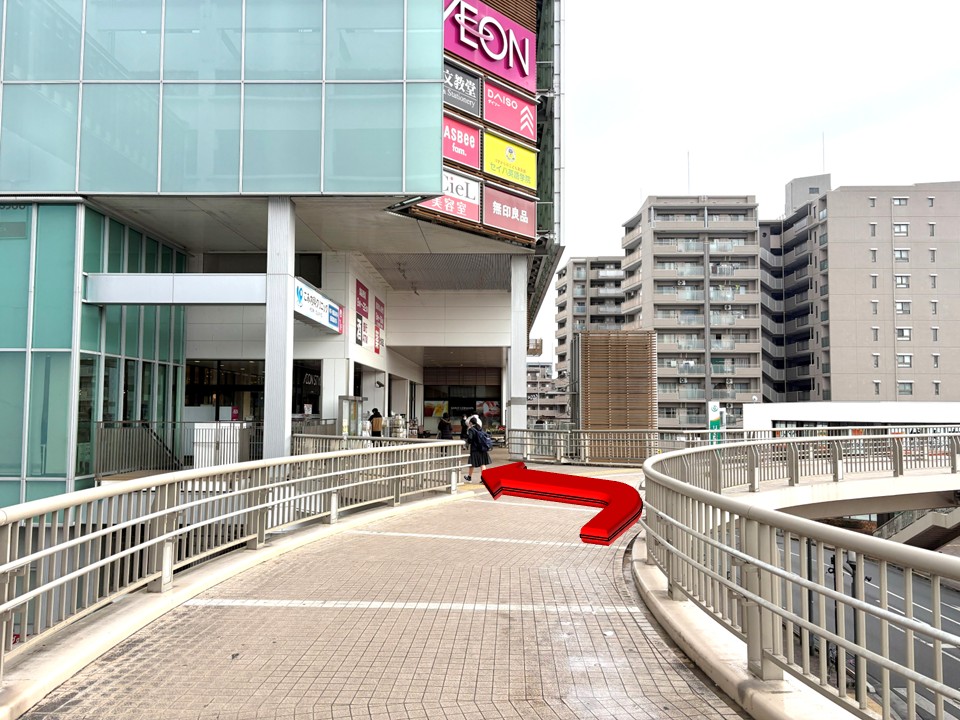 - イオン側は、2階と歩行者デッキが繋がっていて、2階に食品売場。