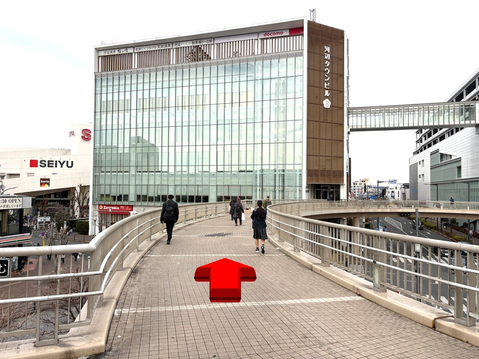 - 河辺駅と歩行者デッキで繋がっていて、河辺タウンビルとして、A棟(イオン側)、B棟(温浴施設、青梅市中央図書館)に分かれている。