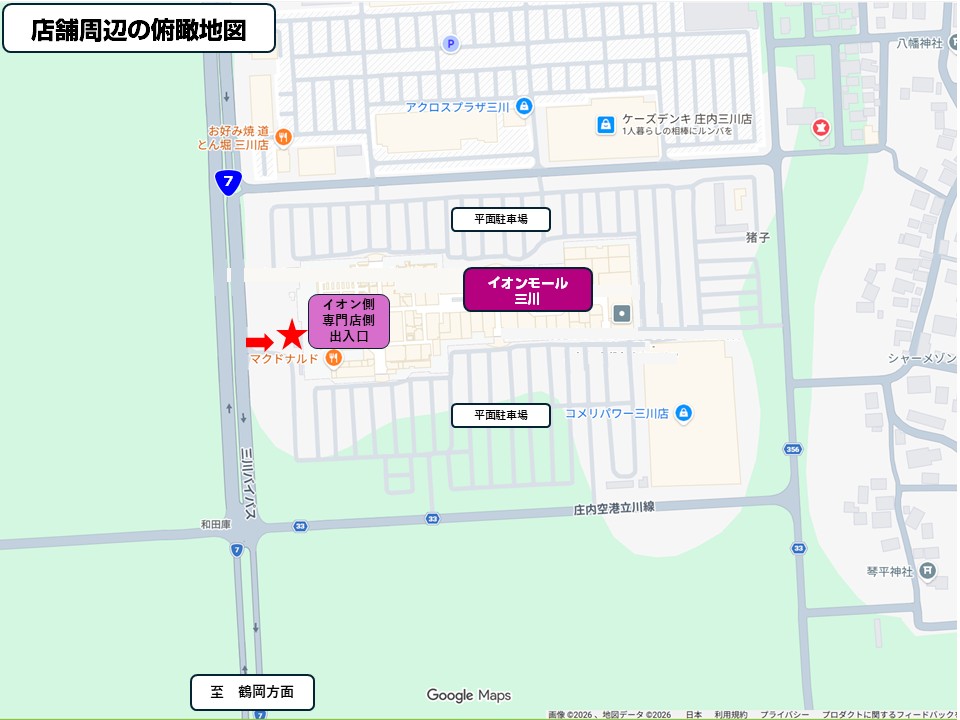 • イオンモール三川は、国道7号沿いにあり、比較的来店しやすい。