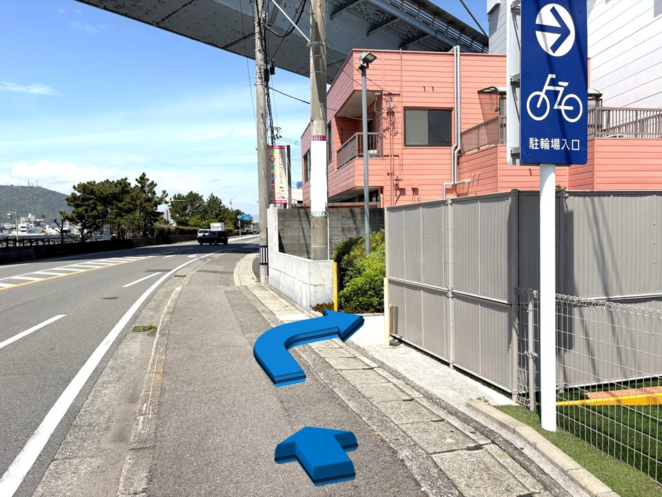 ■ 俯瞰地図(全体像)、案内ルート(最寄り駅、又は側道から)