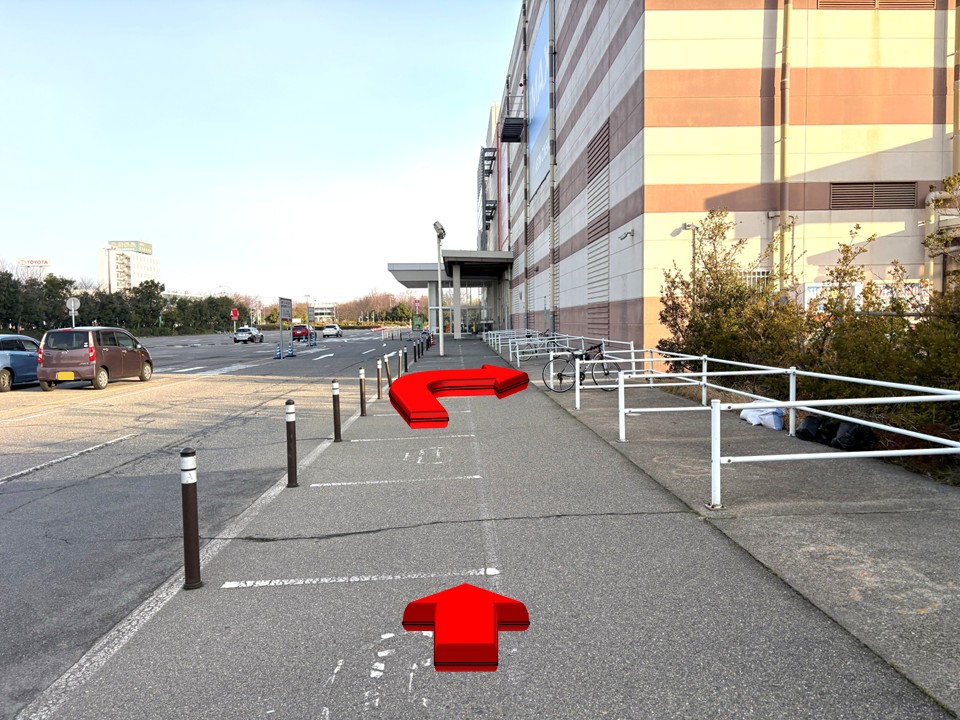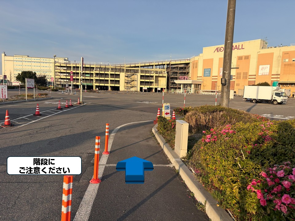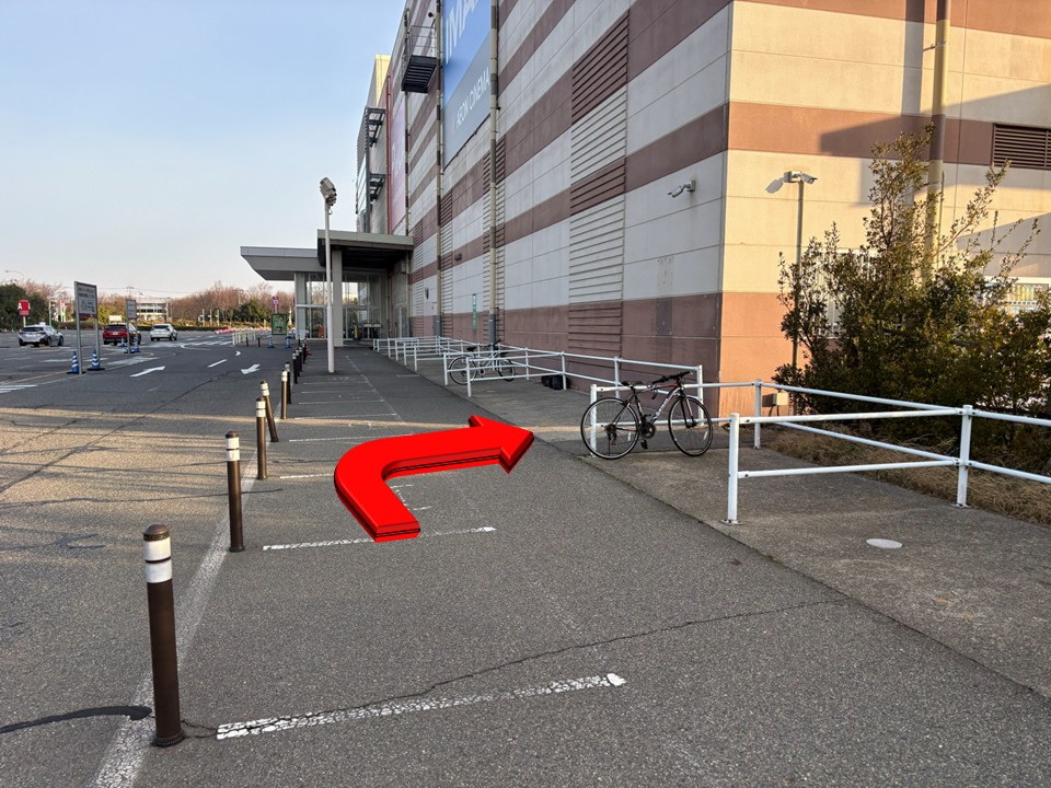 • 従業員用駐輪場: 表記はないが、従業員出入口(イオン側)の入口付近にあり