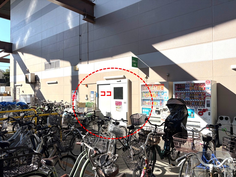- 従業員用駐輪場: 表記あり、従業員出入口側の入口付近にあり