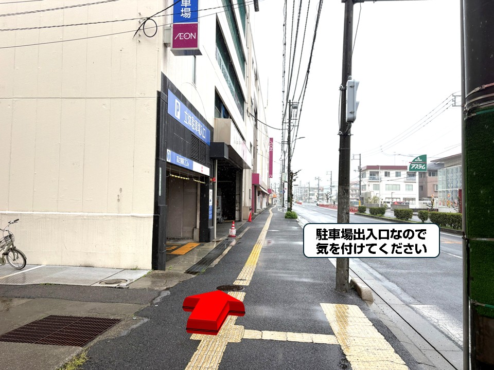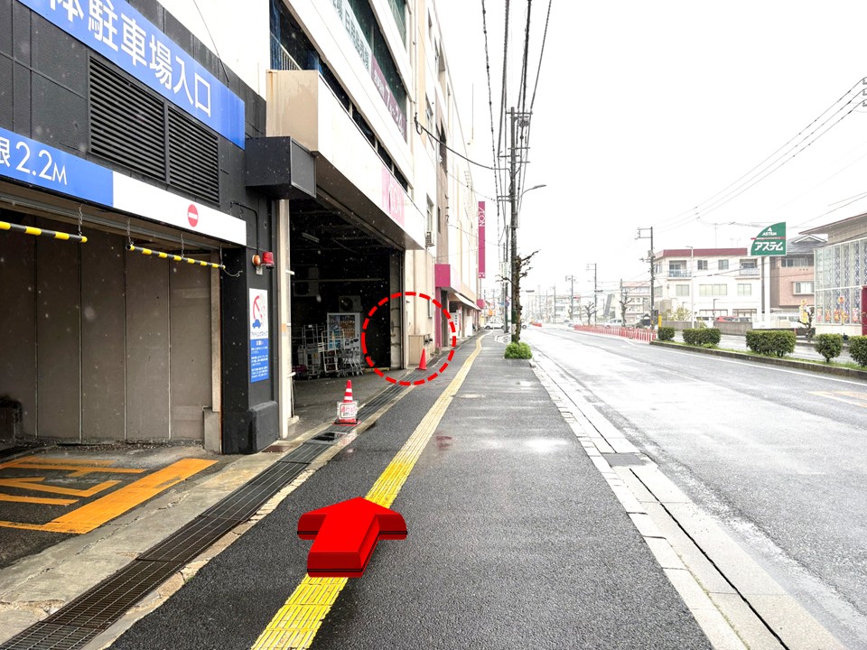 - 立体駐車場から出るときも下り坂なので、ゆっくりと進み、歩道手前でキッチリ停止して左右をしっかり確認しましょう。