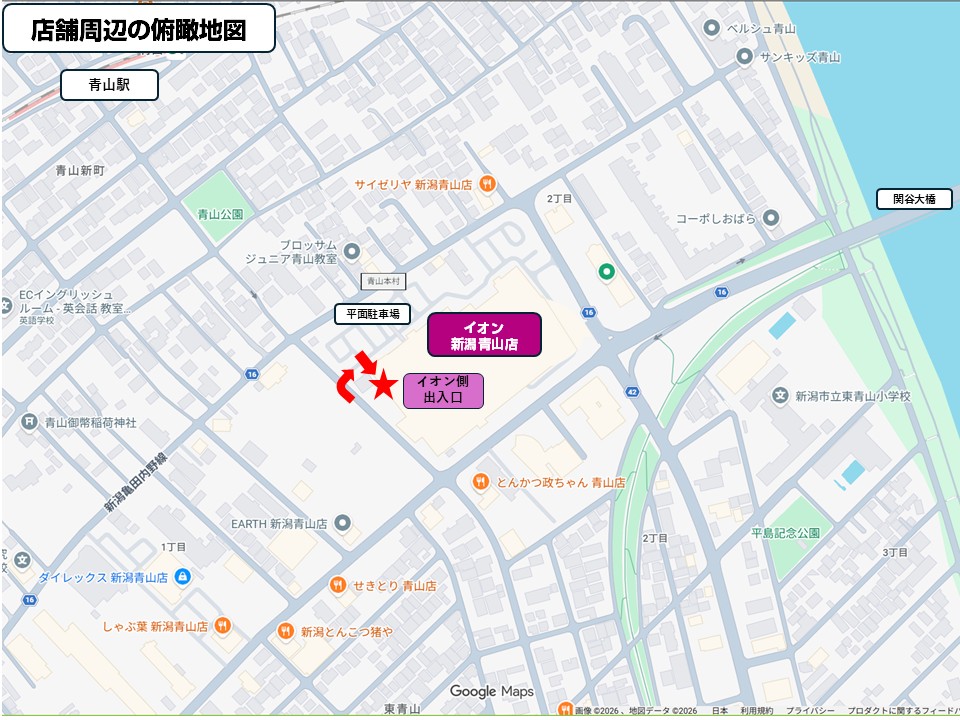 - 詳細は公式サイトでご確認ください:https://www.aeon.com/store/%E3%82%A4%E3%82%AA%E3%83%B3/%E3%82%A4%E3%82%AA%E3%83%B3%E6%96%B0%E6%BD%9F%E9%9D%92%E5%B1%B1%E5%BA%97/