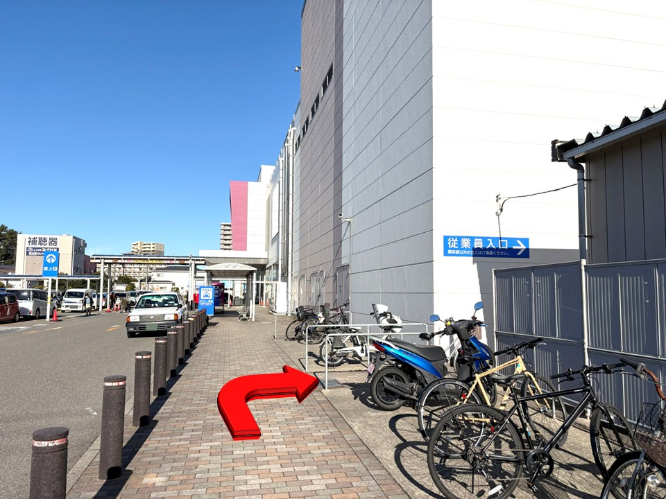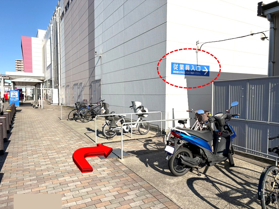 - 従業員用駐輪場: 表記はないが、従業員出入口側の入口付近にあり