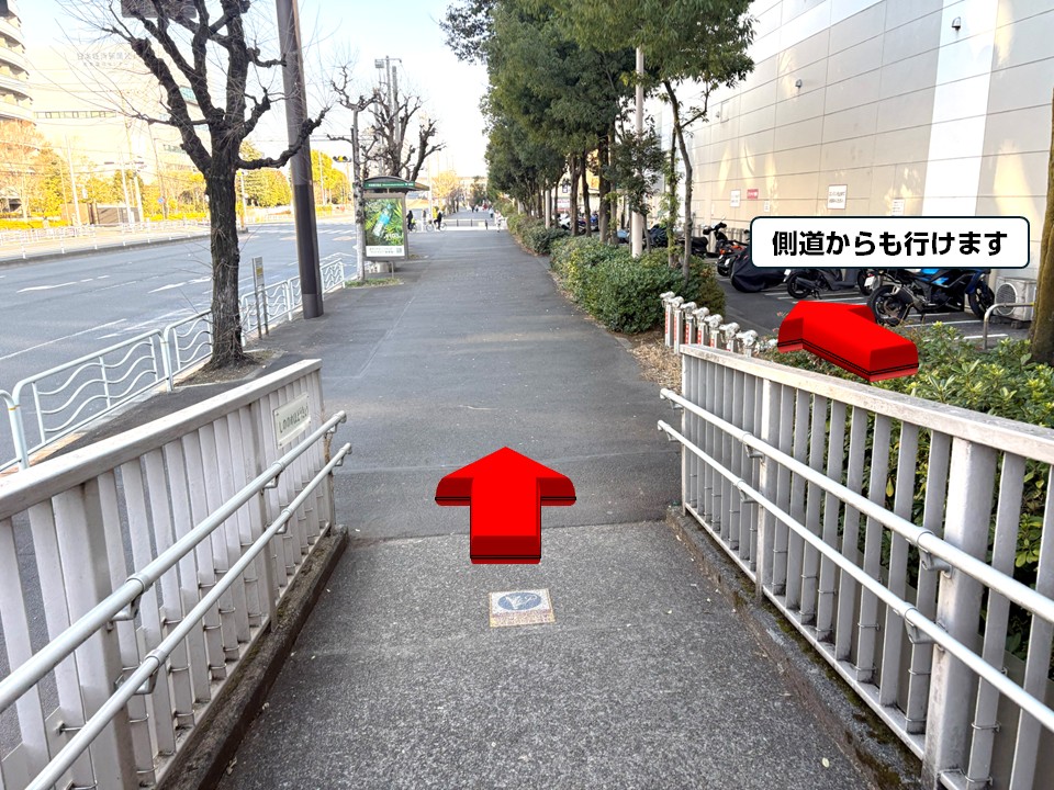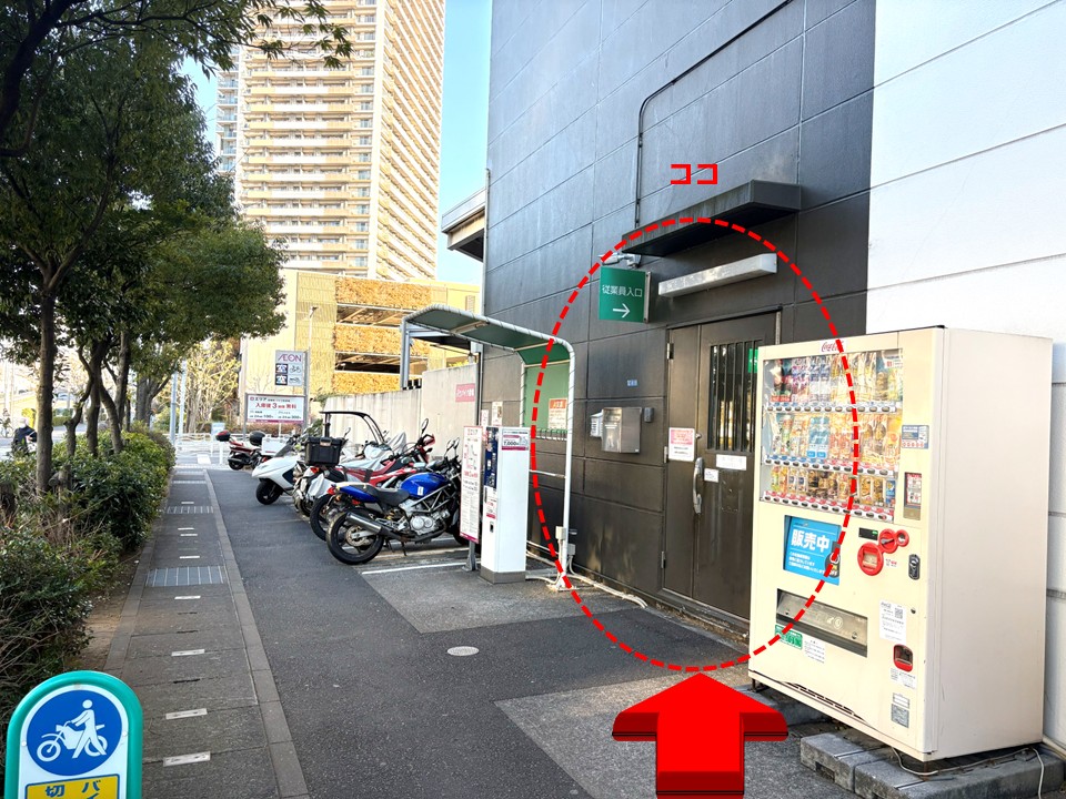 アルバイト面接や初出勤、取引先として訪問する方が迷わないよう、従業員出入口までの行き方を写真で詳しく案内しています。