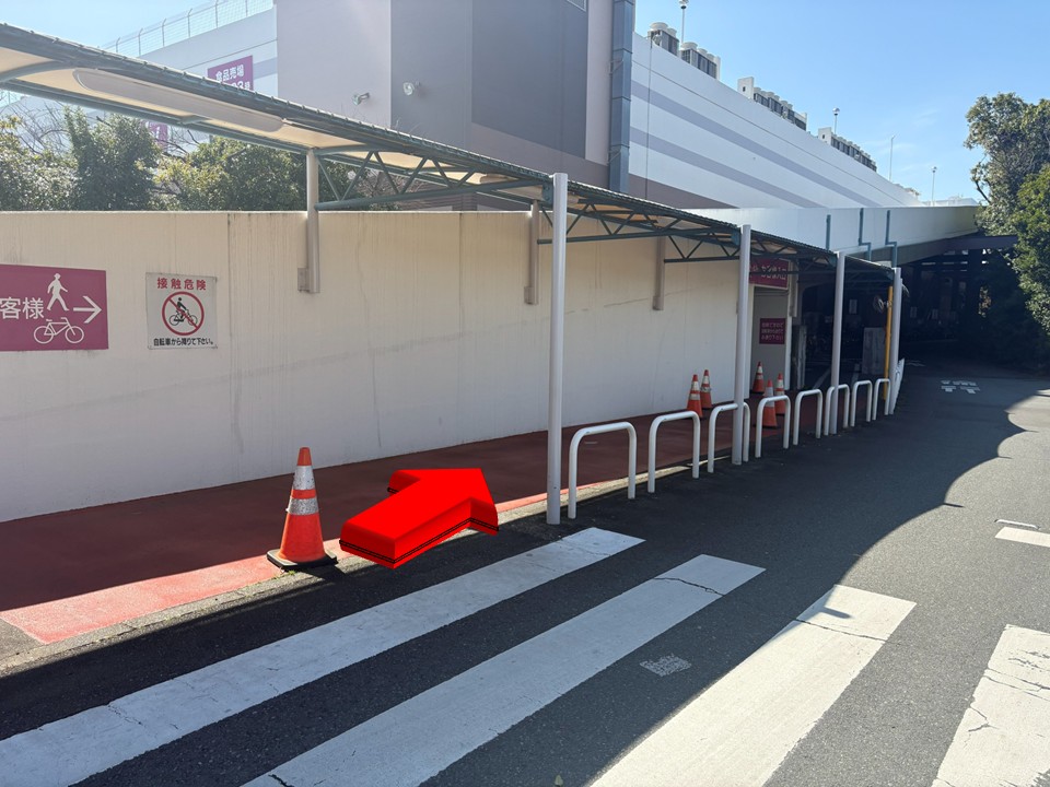 - 従業員用駐輪場: 表記はないが、従業員出入口側の入口付近にあり