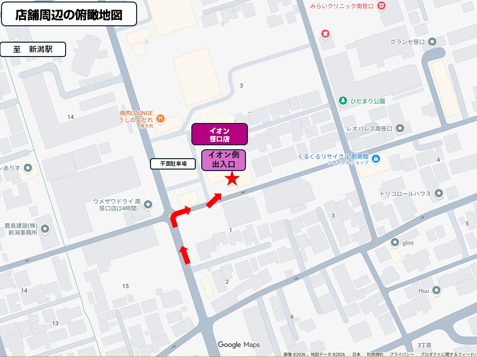 • 新潟駅から少しあるが、住宅も立ち並び、近隣住民が多く来店されている。