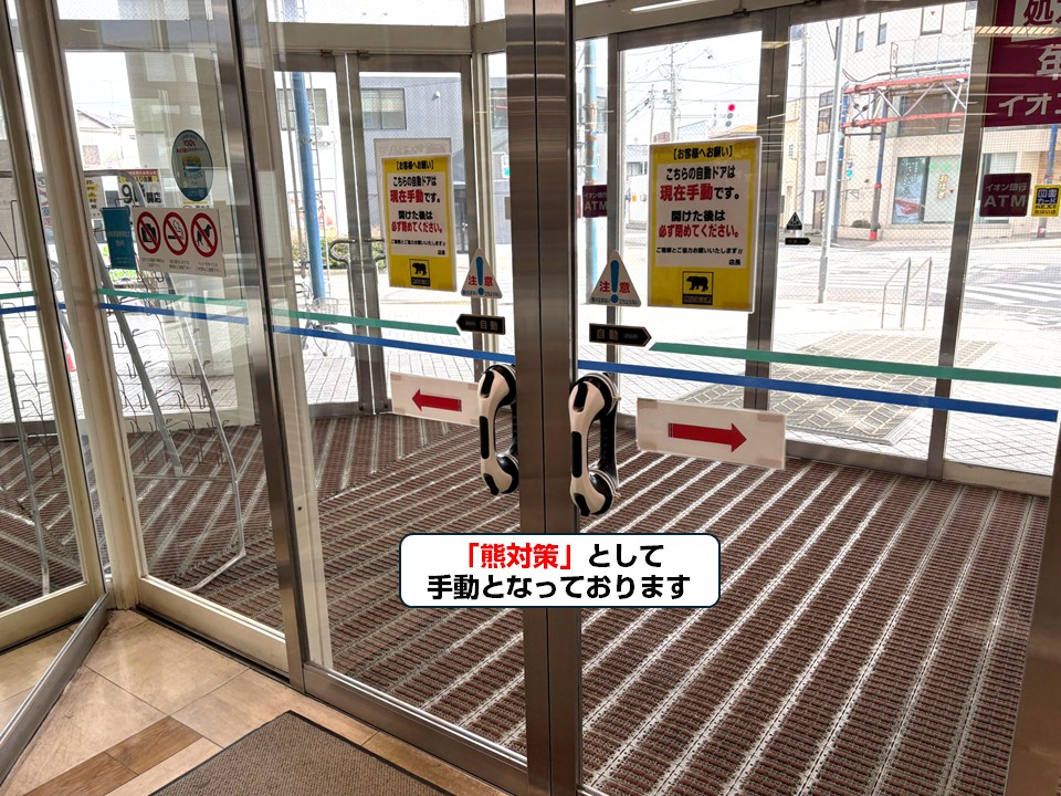 - 2025年11月に、柳町側の出入口から、熊が進入。従業員の方が機転を利かせ、うまく店内に閉じ込めて対応。今は、自動ドアーの対応ではなく、今は「手動」になっている。