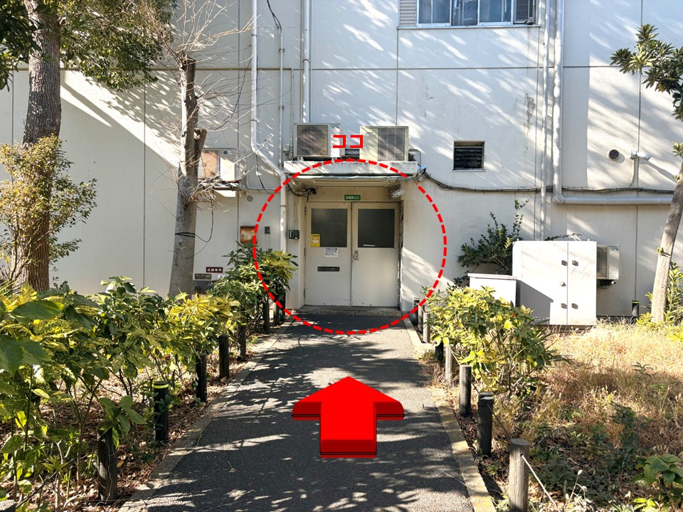 アルバイト面接や初出勤、取引先として訪問する方が迷わないよう、従業員出入口までの行き方を写真で詳しく案内しています。