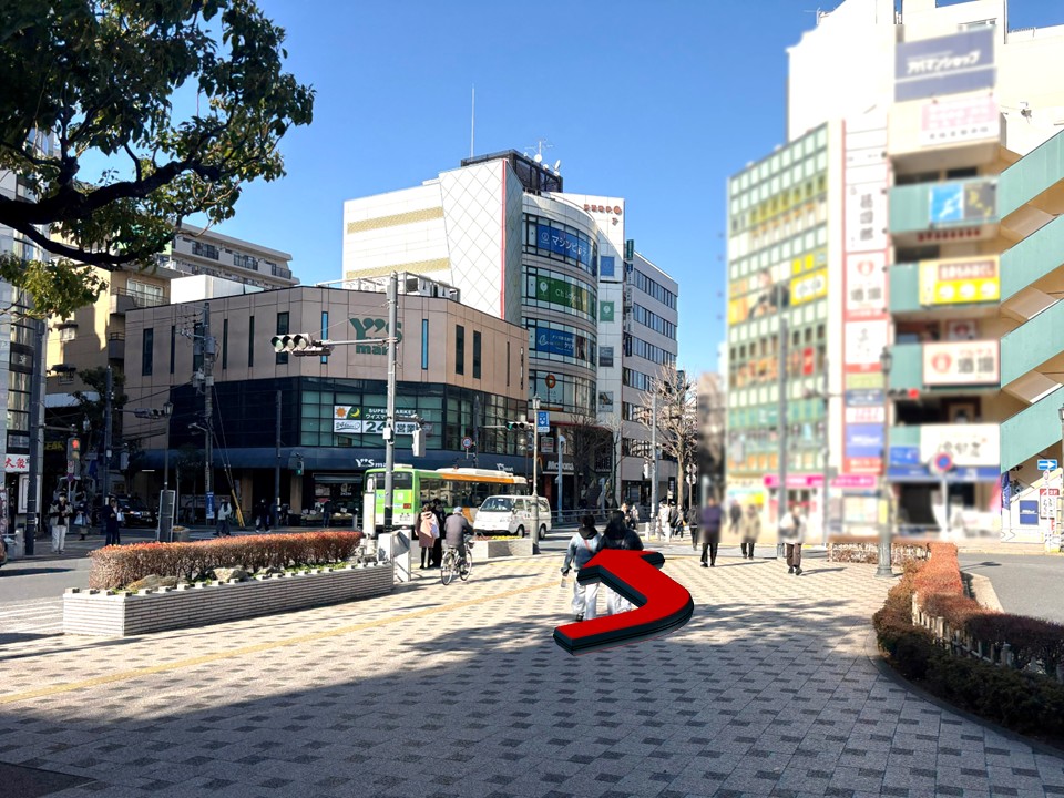 最寄り駅から従業員口までのルートを案内します。